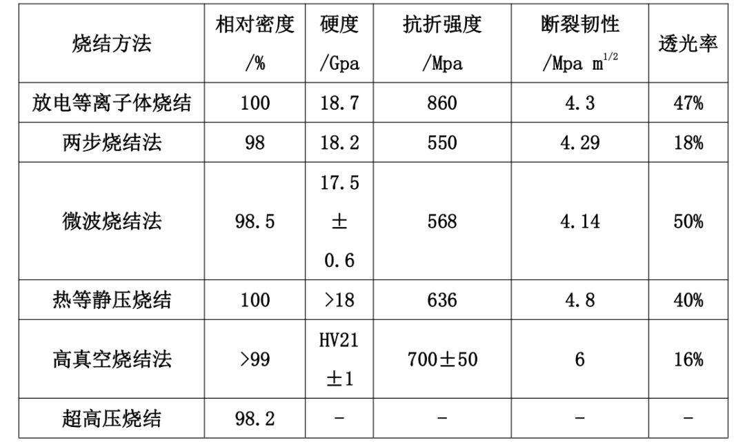 附:不同烧结方法制备的氧化铝陶瓷的性能比较